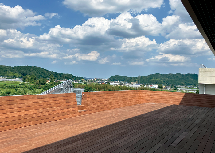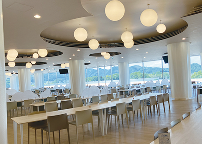 また、社員食堂のテラスから繋ぐ庭が見え、絶好の癒しスポットでした。