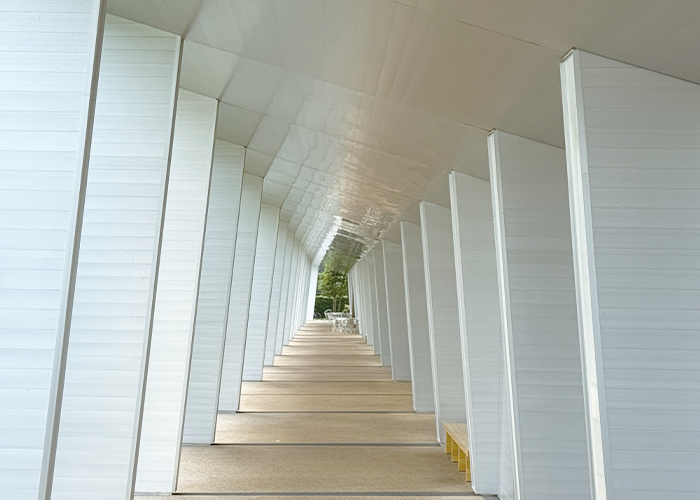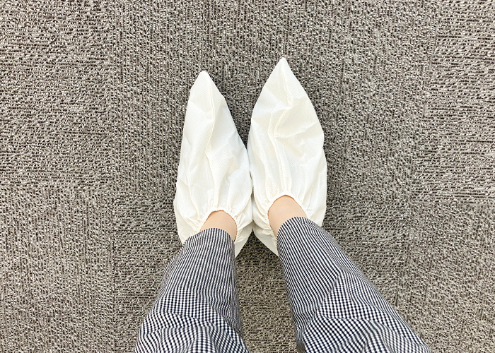 ミュージアムの見学の次はシューズカバーを履いて、4Fサニーラウンジやテラス、2Fの実際の作業現場での見学をさせていただきました。