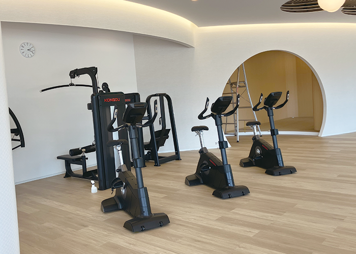 社員食堂やSAKURA LOUNGEなどの従業員向けのエリアも見せていただきました。SAKURA LOUNGEでは他の従業員が製造している商品が見られるようになっていて、その隣には研究用のユニットが設置されていました。従業員の希望でエアロバイクのあるジムスペースが有り福利厚生にも力を入れている事も感じました。